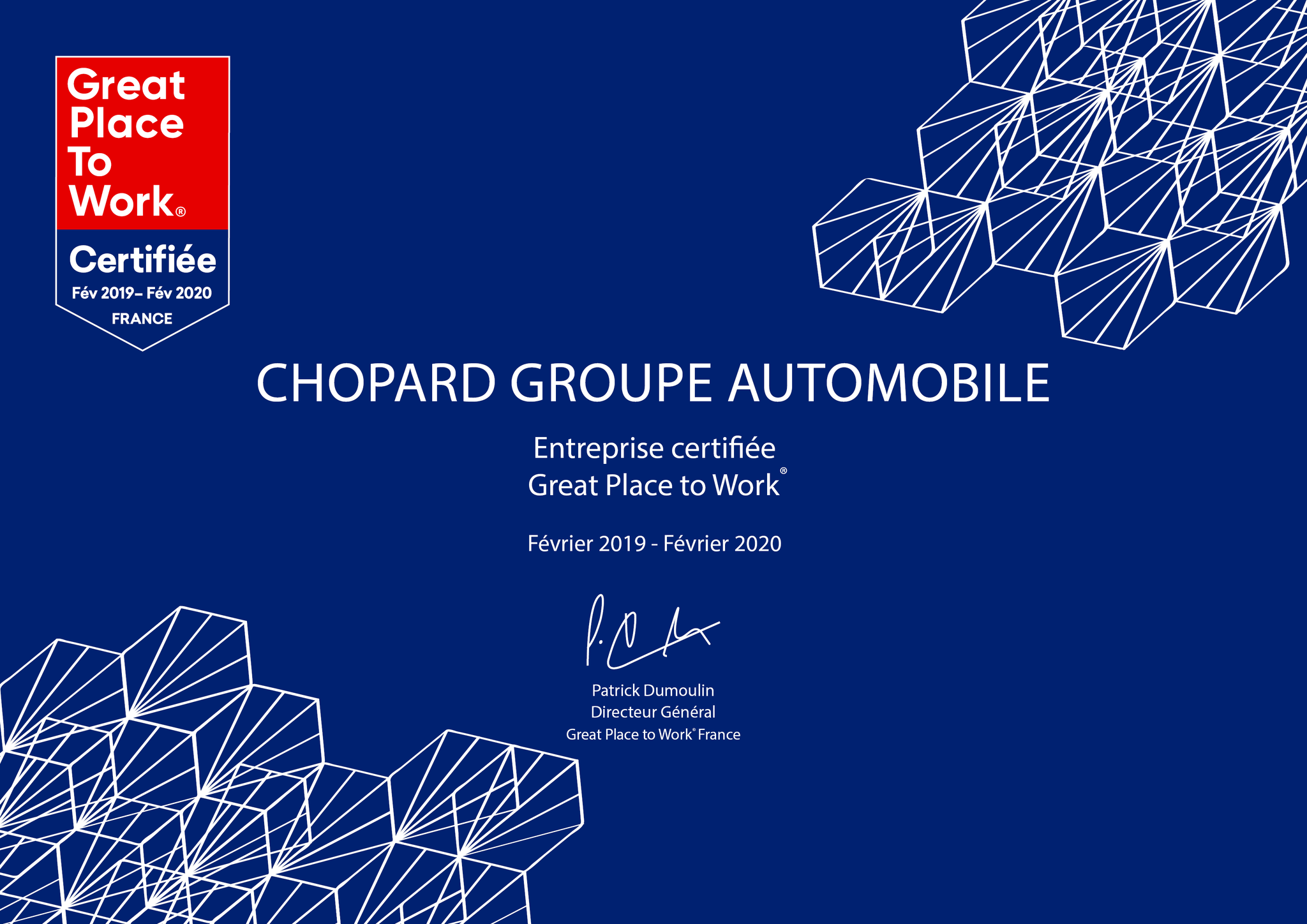 Le Groupe, fort de ses 1950 salariés et 60 concessions, est ainsi le premier groupe de distribution automobile français à obtenir ce label qui récompense le bien-être au travail.